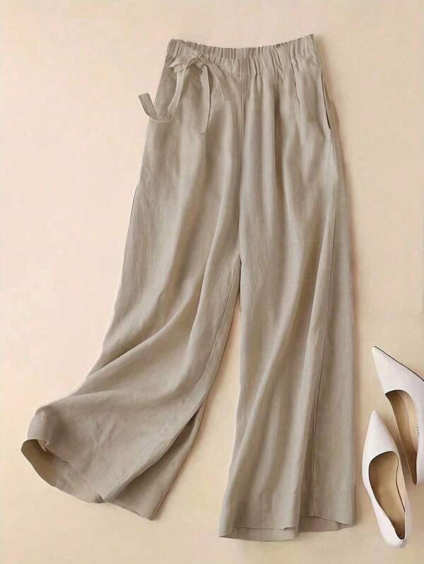 Upgrade your everyday style with these elegant solid wide-leg pants, designed for comfort and effortless fashion. Made from a soft linen-blend fabric, these pants are lightweight, breathable, and perfect for all-day wear. The high-waist elastic waistband with adjustable drawstring ensures a comfortable and flattering fit, while the relaxed wide-leg silhouette adds a chic, modern touch.